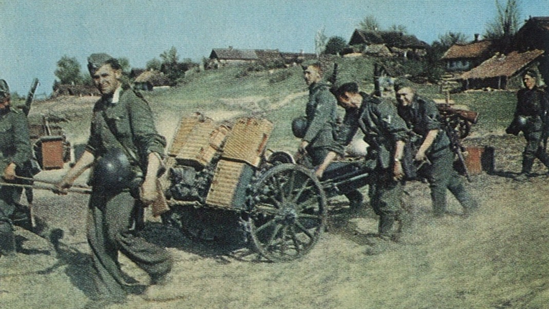 August 1941 - Die Anfangserfolge der deutschen Wehrmachtsverbände im Krieg gegen die Sowjetunion beruhen auf schnellen, keilförmigen Vorstößen der Panzereinheiten. Hinter den Panzergruppen marschieren Infanterieverbände, die zwischen den Panzerkeilen stehende Truppen der Roten Armee bekämpfen. Sie sollen durch schnelles Vordringen zu den Panzerspitzen aufschließen, um große Territorien schnell unter ihre Kontrolle zu bringen, die Verbindung zu den Panzerverbänden aufrechterhalten und deren Nachschubwege für weitere Vorstöße sichern.