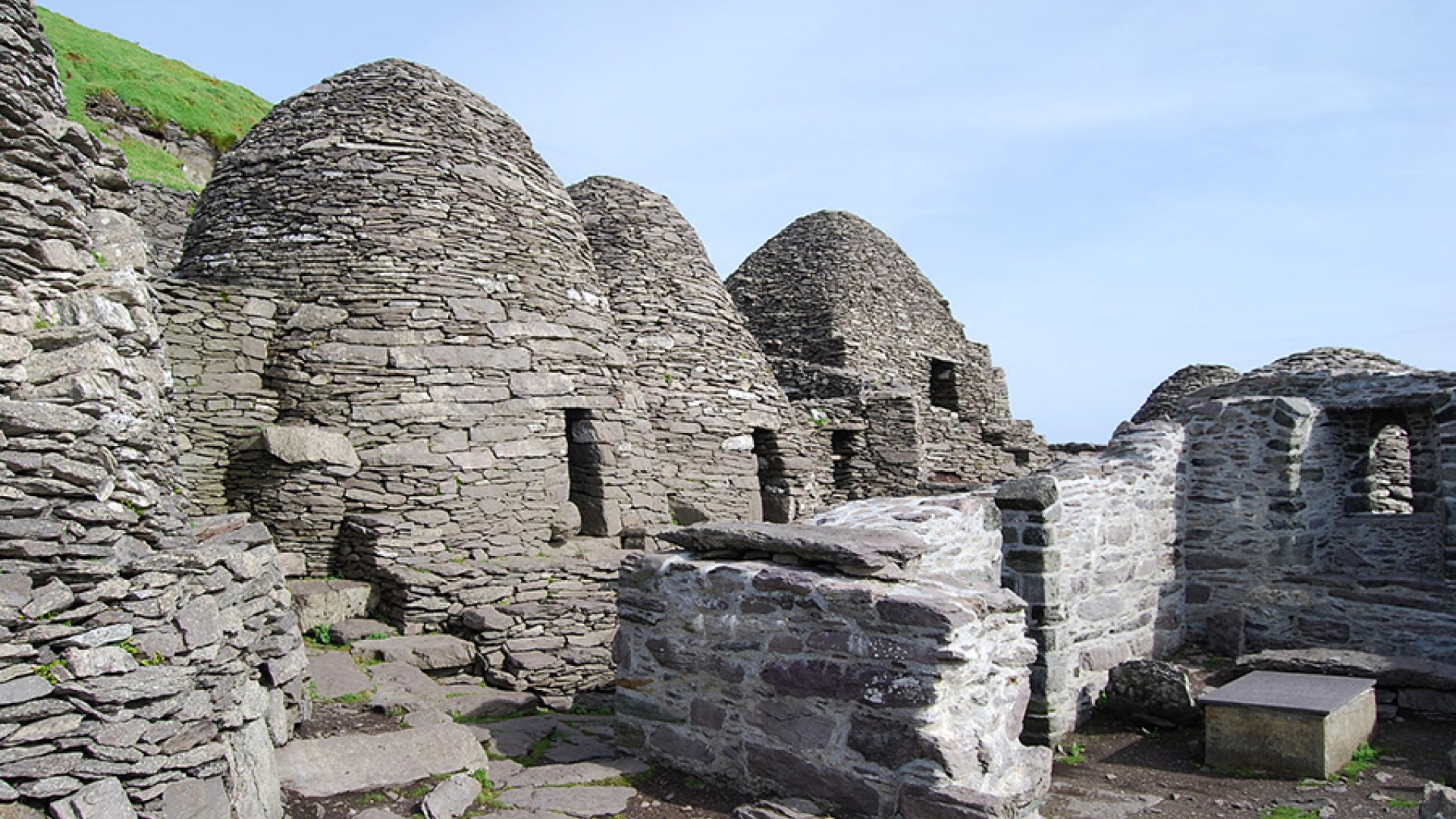 Diese Bauwerke sind die Überreste eines der ältesten und ungewöhnlichsten Klöster der Erde. Vor rund 1.400 Jahren kamen asketische Mönche auf die Insel, um in dieser kargen Wildnis die Einsamkeit zu suchen und in Einkehr und Gebet Gott näher zu kommen. Für ihre Unterkünfte bedienten sie sich ausschließlich von dem, was die Insel selbst hergab: die Steine.
