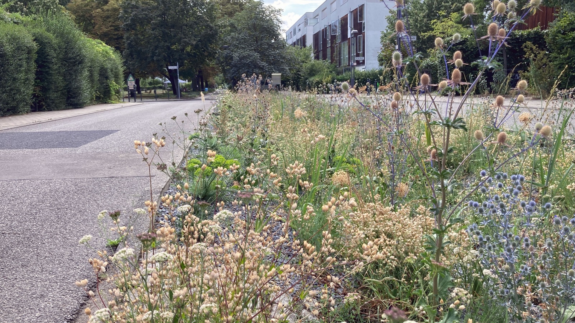 Neben der Auswahl geeigneter Pflanzen ist es auch sinnvoll, ihnen möglichst viel Raum zu geben. „Man sollte den Boden so wenig wie möglich versiegeln, sodass man viel Fläche hat, wo Wasser versickern kann, und der natürliche Wasserkreislauf gewährleistet ist. Asphalt sollte man ganz meiden und Plattenbeläge für Terrasse und Wege muss man nicht unbedingt verfugen“, rät Norbert Kühn.