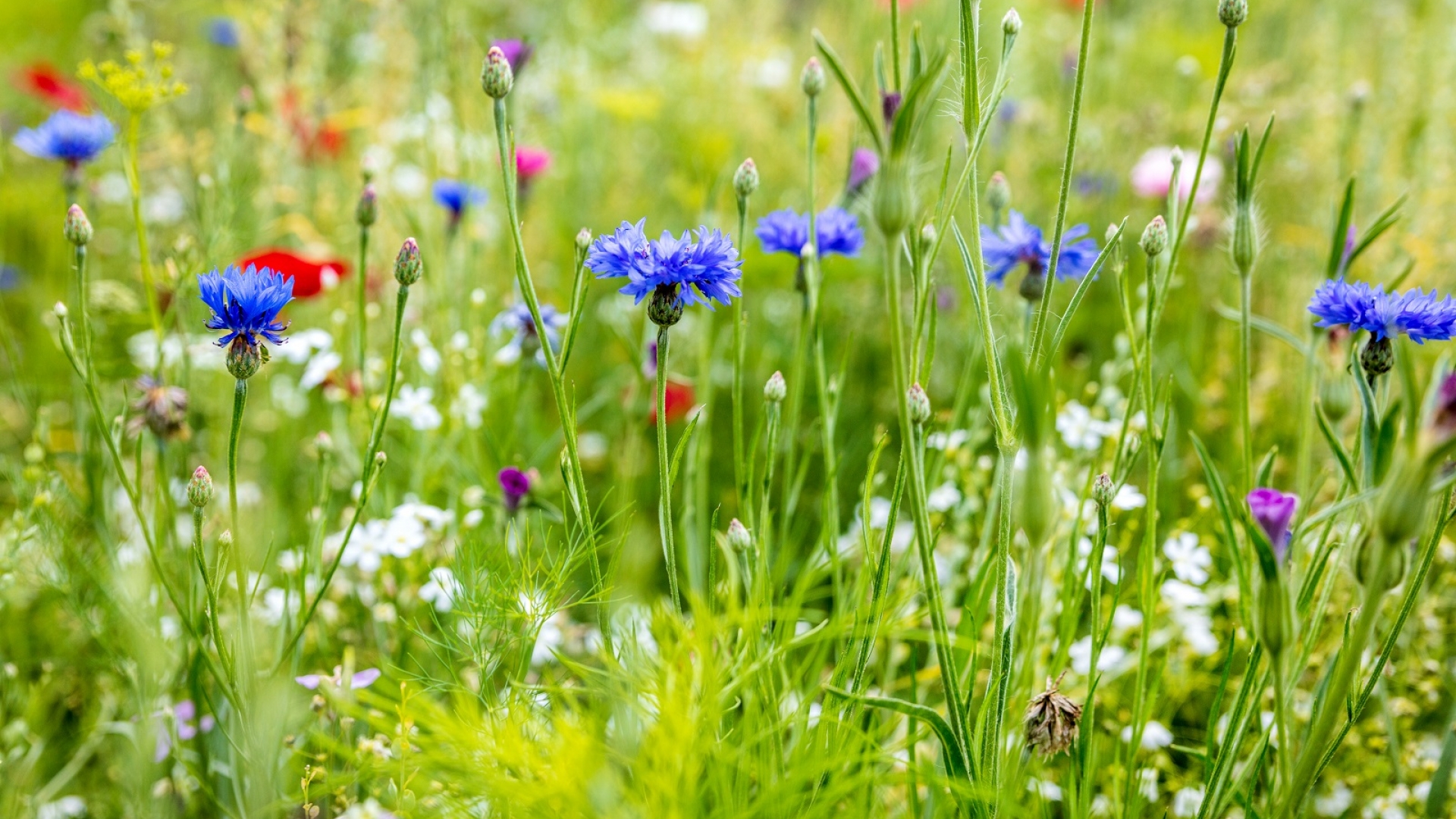 Entsprechende Saatmischungen gibt es zum Beispiel im Internet. Auf der Wiese wachsen auch Pflanzen, die man sonst als Unkraut verteufeln würde, zum Beispiel Löwenzahn. Ebenso sprießen Margeriten, Mohn und Kornblumen. Neben neuen Farbklecksen im Garten hat die Wiese auch noch andere Vorteile. Zum Beispiel bietet sie Lebensraum für verschiedene Tiere und Nahrung für Bestäuber.