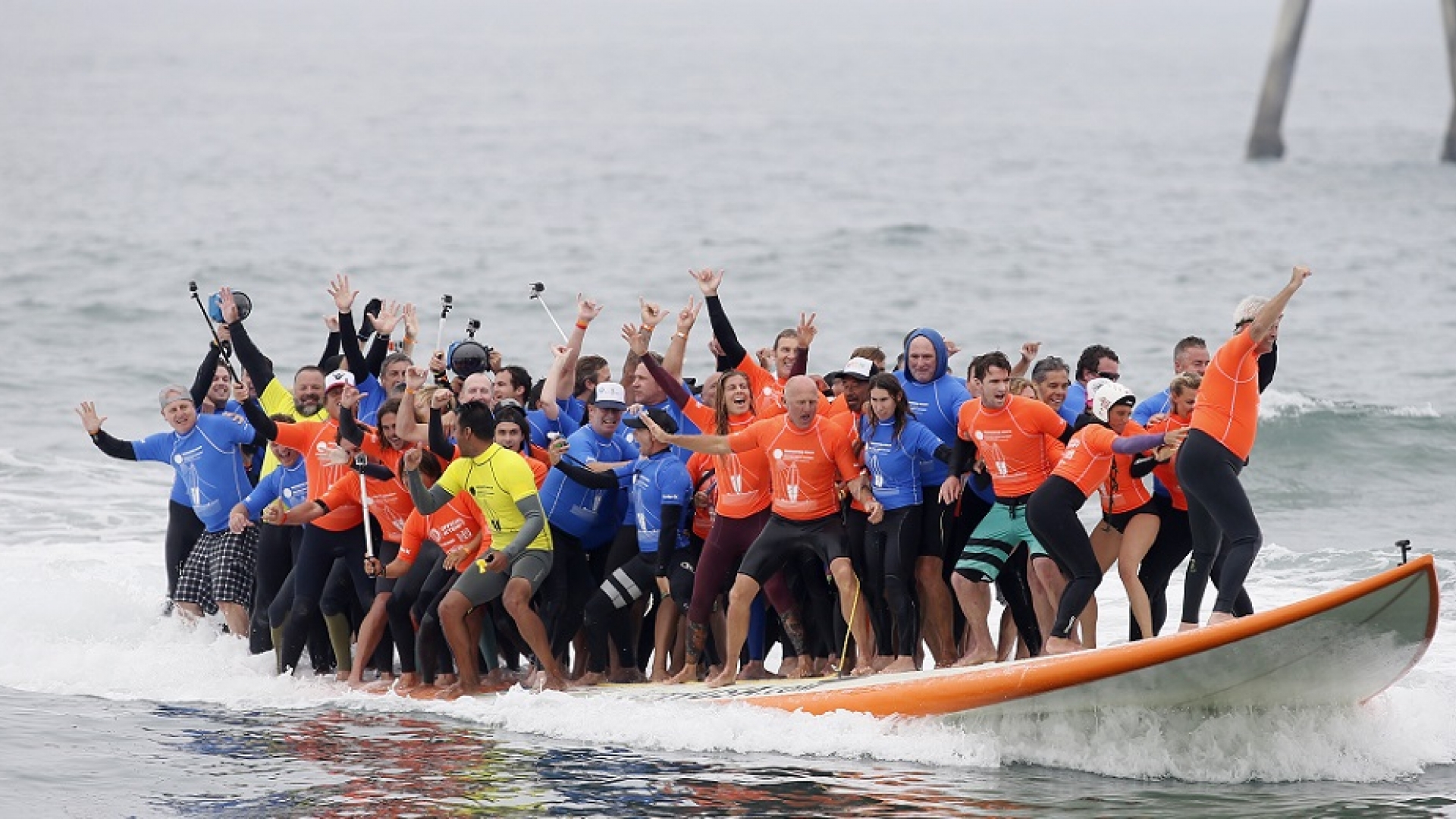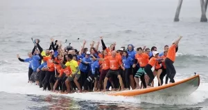 Noch ganz frisch ist dieser Sommerrekord: Am 20. Juni 2015 balancierten 66 Leute am Huntington Beach in Kalifornien gemeinsam auf einem riesigen Surfbrett. Sie stellten damit einen Weltrekord für die meisten Leute auf, die gleichzeitig surfen. Ihr Board war 12,8 Meter lang. Die längste Zeit auf einem Surfbrett verbrachte der US-Surfer Ben Shaw. Er hielt es 29 Stunden und 27 Minuten am Stück auf seinem Brett vor der Küste von North Carolina aus.