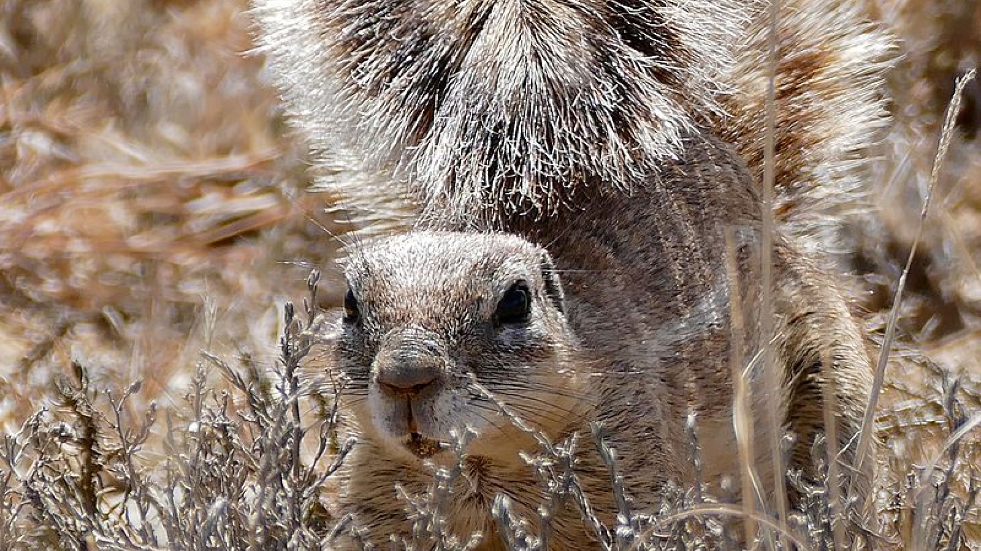 Das afrikanische Borstenhörnchen hat immer einen Sonnenschirm dabei.