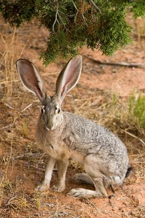 Auch die großen, kaum behaarten Lauscher der nordamerikanischen Eselhasen dienen der Kühlung.