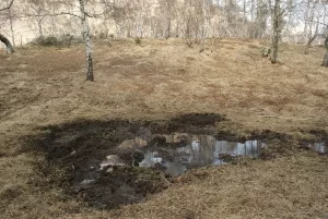 Bei trockenem, heißem Wetter legen sich nicht nur Wildschweine, sondern auch Hirsche gerne in einer sogenannten Suhle nieder. Zur erfrischenden Abkühlung gibt es gratis einen Schlammpanzer gegen Stechinsekten.