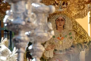 Dann öffnen sich die Pforten der größten gotischen Kathedrale der Welt, und die ersten Nazarenos der Bruderschaft „El Silencio“ schreiten ins Mondlicht. Schwarz und schweigend bilden sie einen Unterschied zur fröhlichen Macarena-Prozession, der größer nicht sein könnte. El Silencio ist die älteste und ehrwürdigste Bruderschaft Sevillas und wird auch „Madre y Maestra“ – Mutter und Meisterin – genannt. Gegründet 1340, beging sie ihre erste Semana Santa im Jahr 1356, und ihr von 50 Männern getragener „Paso del Cristo“ gleitet heute wie damals als goldene Barke durch die Menschenmenge – obenauf die Statue des „Cristo del Silencio“ in violetter, goldverzierter Tunika, umringt von unzähligen barocken Engeln.