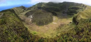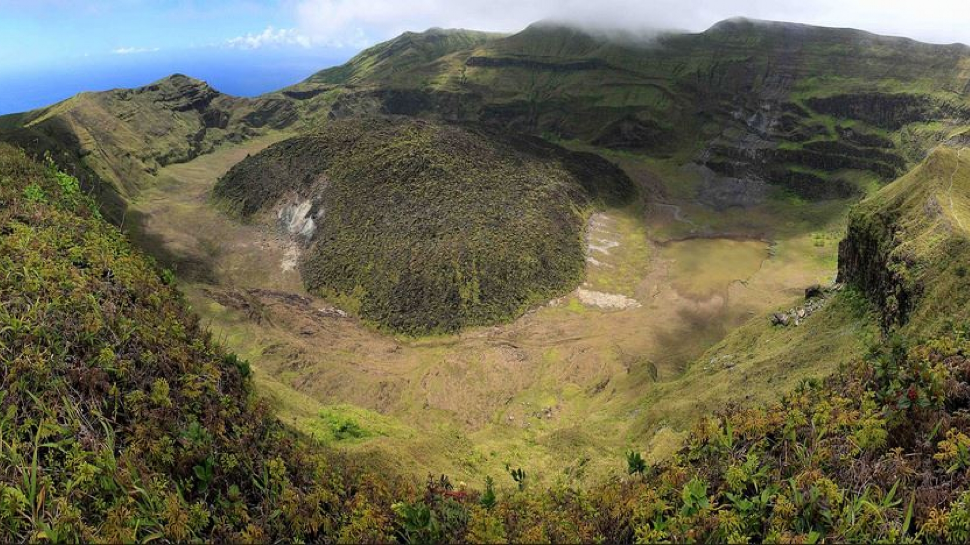 Blick in den sehenswerten Krater des aktiven Vulkans La Soufrière