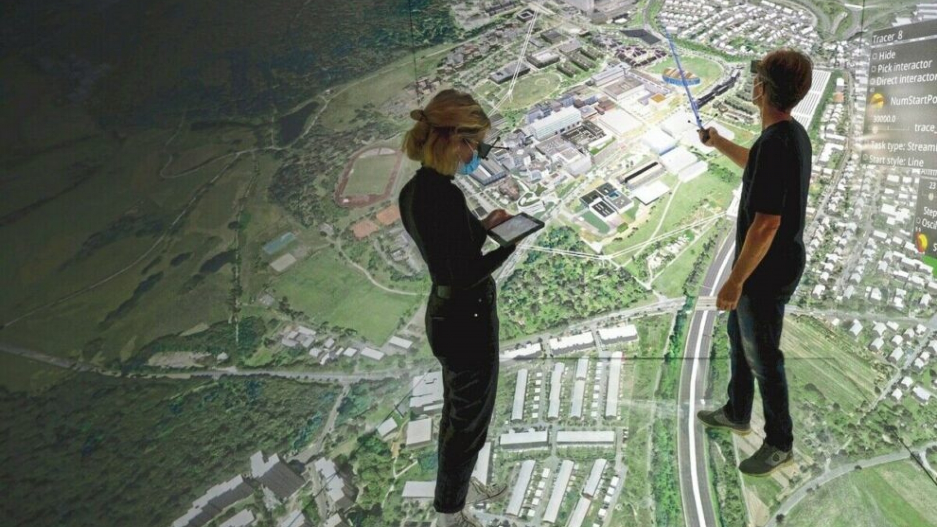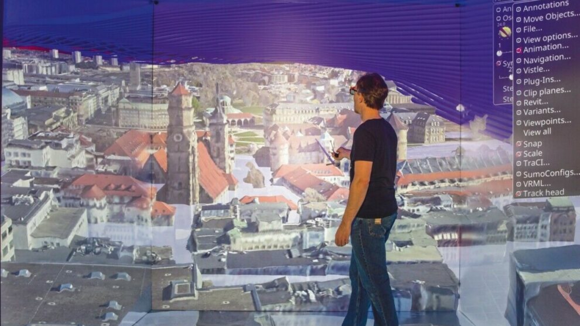 In einem zunächst recht unscheinbar wirkenden Raum am Höchstleistungsrechenzentrum Stuttgart (HLRS) gibt es einen Vorgeschmack auf die Stadtplanung von morgen. Hier entstehen ganze Städte als virtuelle 3D-Darstellung. Wer sich ihr mit einer Virtual-Reality-Brille nähert, sieht eine Stadt aus der Vogelperspektive oder steht auf ihren Straßen und Plätzen – im Maßstab 1:1 mit realitätsnahem Umfeld. Was schon optisch beeindruckend ist, hat einen tieferen Sinn: Solche Visualisierungen sollen die Stadtplanung verbessern, weg vom Kleinklein der Einzelmaßnahmen und hin zu einer integrierten Gesamtschau.