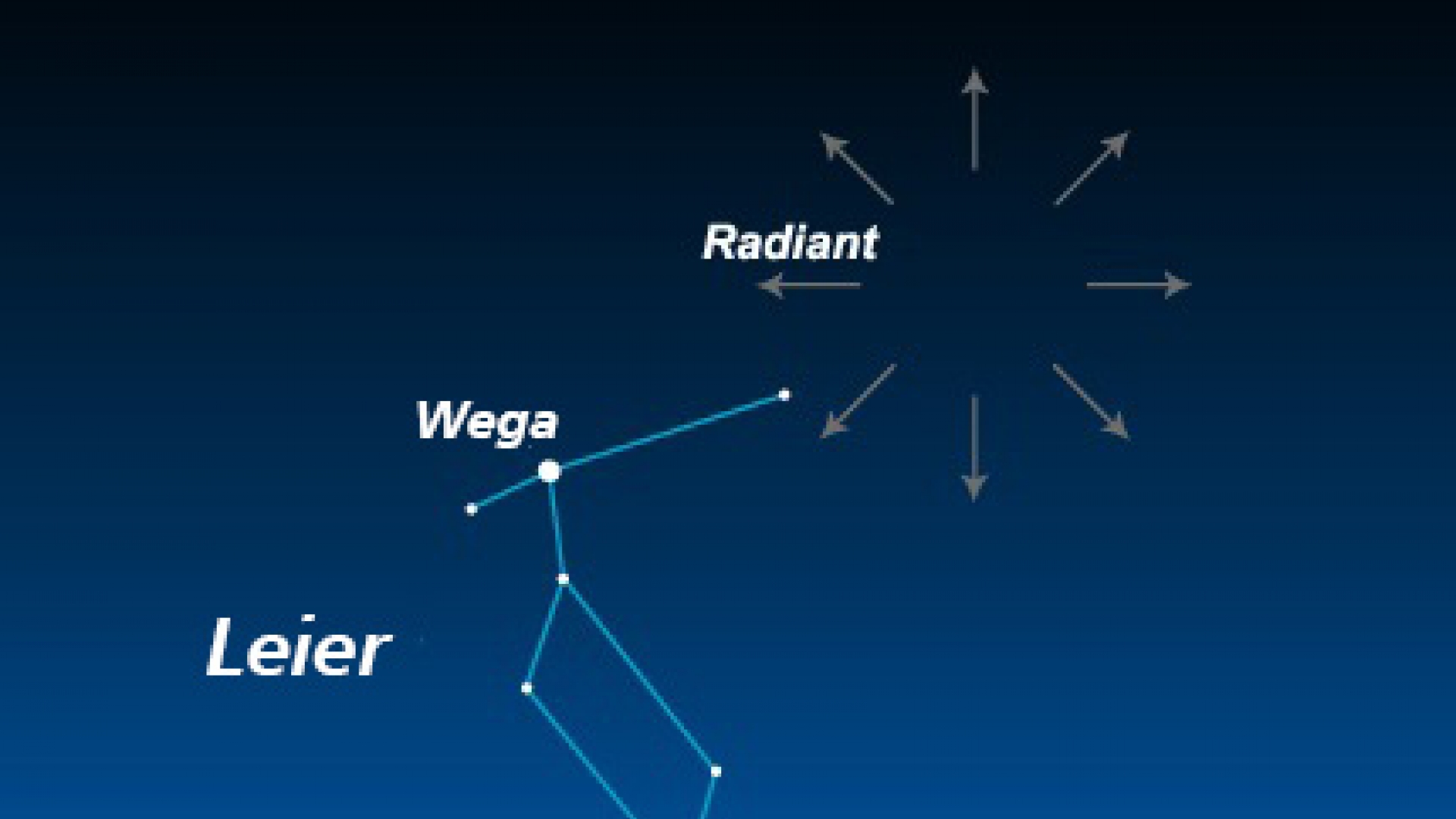 Der scheinbare Ursprung des Lyriden-Schauers liegt in der Nähe des Sternbildes Leier.