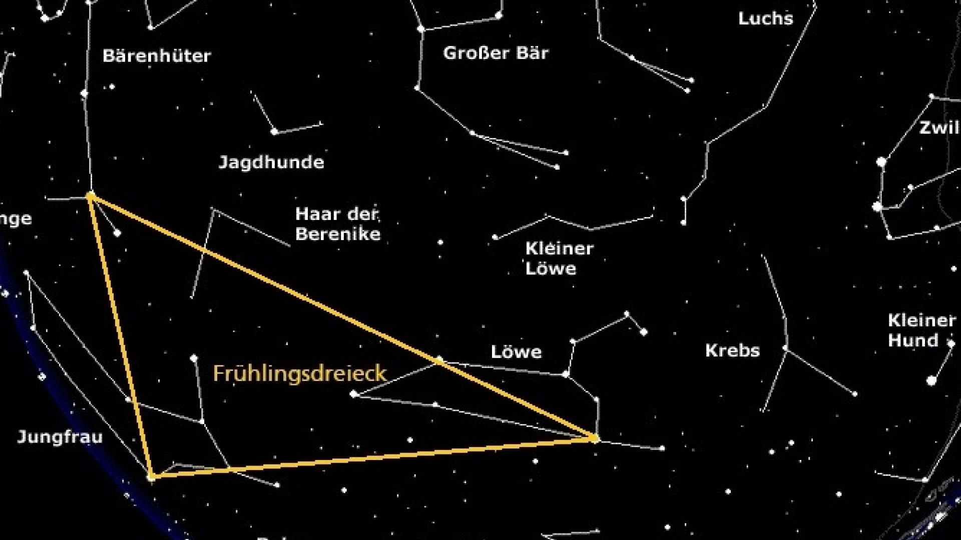 Im April steht der Löwe hoch im Süden und der Große Bär im Zenith.