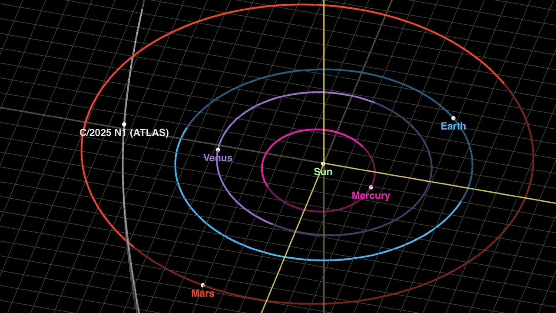 Vorher erreicht er aber am 19. Dezember noch seinen erdnächsten Punkt. Dabei bleibt 3I/ATLAS jedoch so weit von der Erde entfernt, dass er nur mit großen Teleskopen zu erkennen ist. Der interstellare Komet wird uns im Abstand von rund einer astronomischen Einheit passieren – das entspricht der Entfernung unserer Erde zur Sonne.