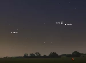 Rendezvous von Mond und Jupiter am frühen Morgen des 27. März.
