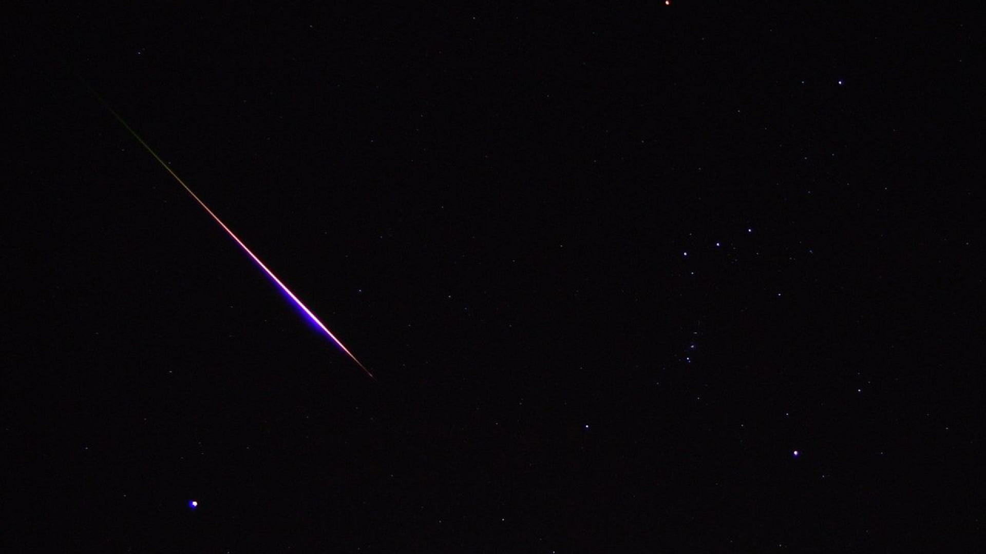 Eine Sternschnuppe der Leoniden – dieser Meteorschauer erwartet uns am 17. November. recht erkennt man das Sternbild Orion.