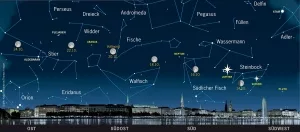 Unter den Herbststernbildern steht das geflügelte Pferd Pegasus zurzeit besonders hoch und prominent am Himmel. „Die drei hellsten Sterne des Sternbildes Pegasus gehören zum markanten ‚Herbstviereck‘. Bei diesem handelt es sich, neben dem Sommerdreieck im Südwesten und dem Himmels-W der Kassiopeia hoch über uns, um das einzige auffällige und leicht zu merkende Muster am Herbsthimmel“, erklärt Thomas Kraupe, Direktor des Planetariums Hamburg. „Der vierte und nordöstlichste Lichtpunkt der markanten Formation ist sein Hauptstern ‚Alpha‘ im Sternbild Andromeda.“