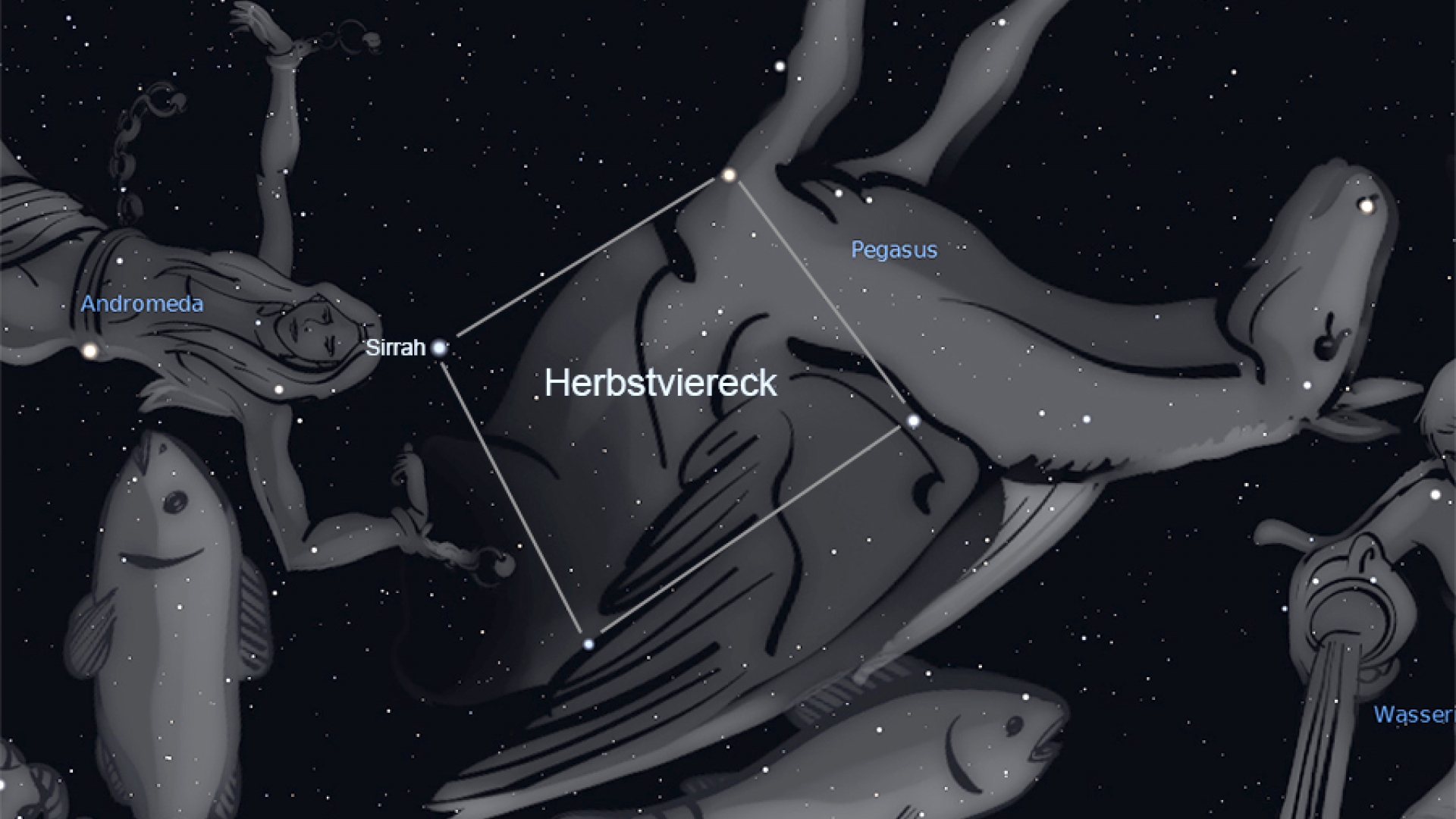 Gleichzeitig gehen aber im Osten bereits die ersten Herbst-Sternbilder auf – und mit ihnen das Herbstviereck. Bei ihm handelt es sich nicht um ein Sternbild, sondern um eine aus vier Sternen verschiedener Konstellationen gebildete Form. Das helle Quadrat aus Sternen besteht aus den drei hellsten Sternen im Sternbild Pegasus und dem Hauptstern der Andromeda. Weil dieses Himmelsquadrat vom Spätsommer bis Ende Oktober sichtbar ist, gilt es als eines der Kennzeichen des astronomischen Herbstes.