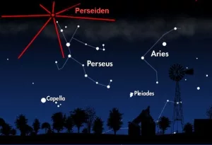 Beim Perseiden-Schauer scheinen die Sternschnuppen aus dem Sternbild Perseus zu kommen.
