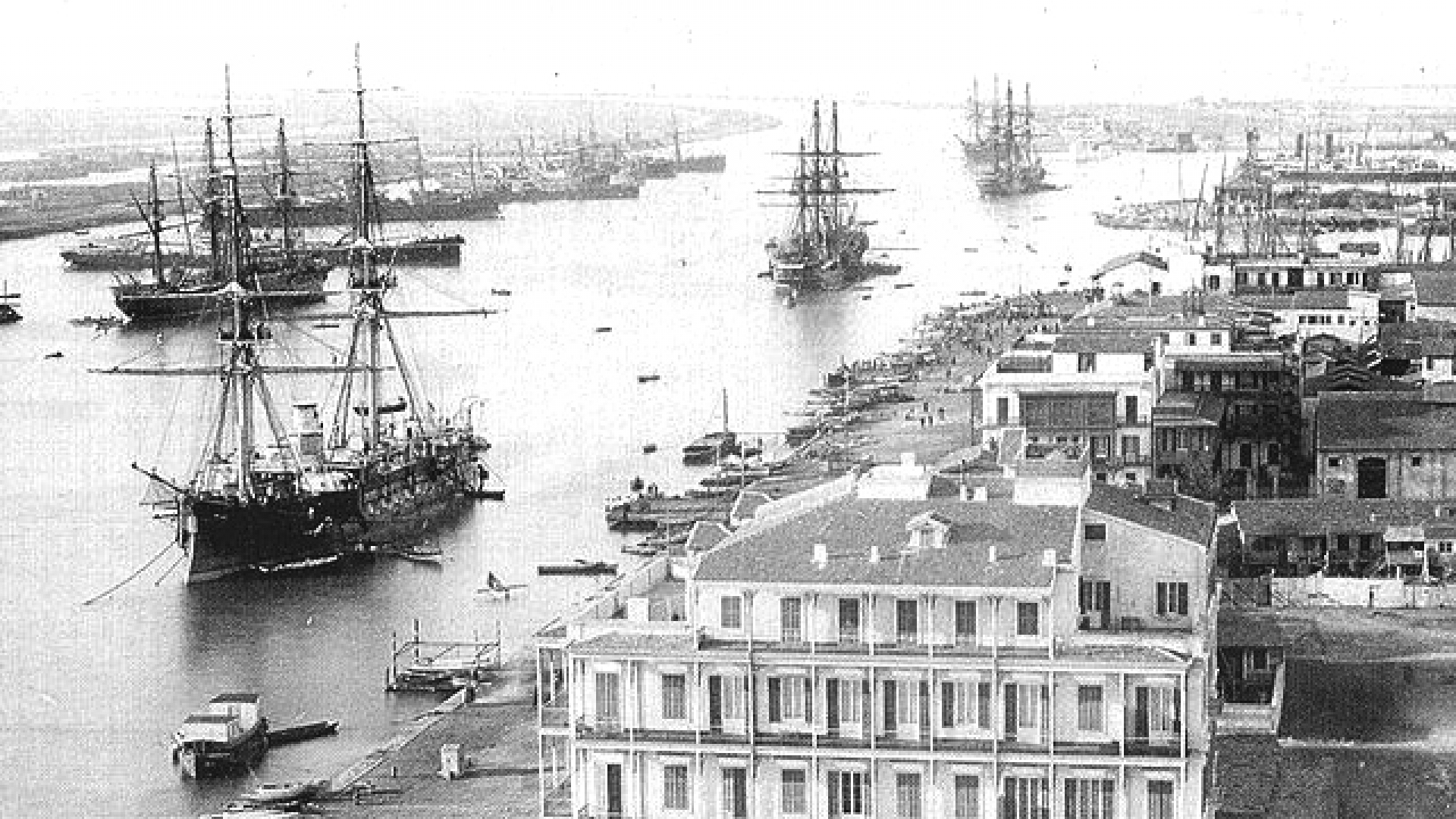 Auf diesem Foto aus dem Jahre 1880 sieht man Schiffe, die im Hafen von Port Said auf die Kanalpassage warten. Zu diesem Zeitpunkt passierten etwa 3.000 Schiffe pro Jahr den Kanal - trotz der stolzen Kanalgebühren.
