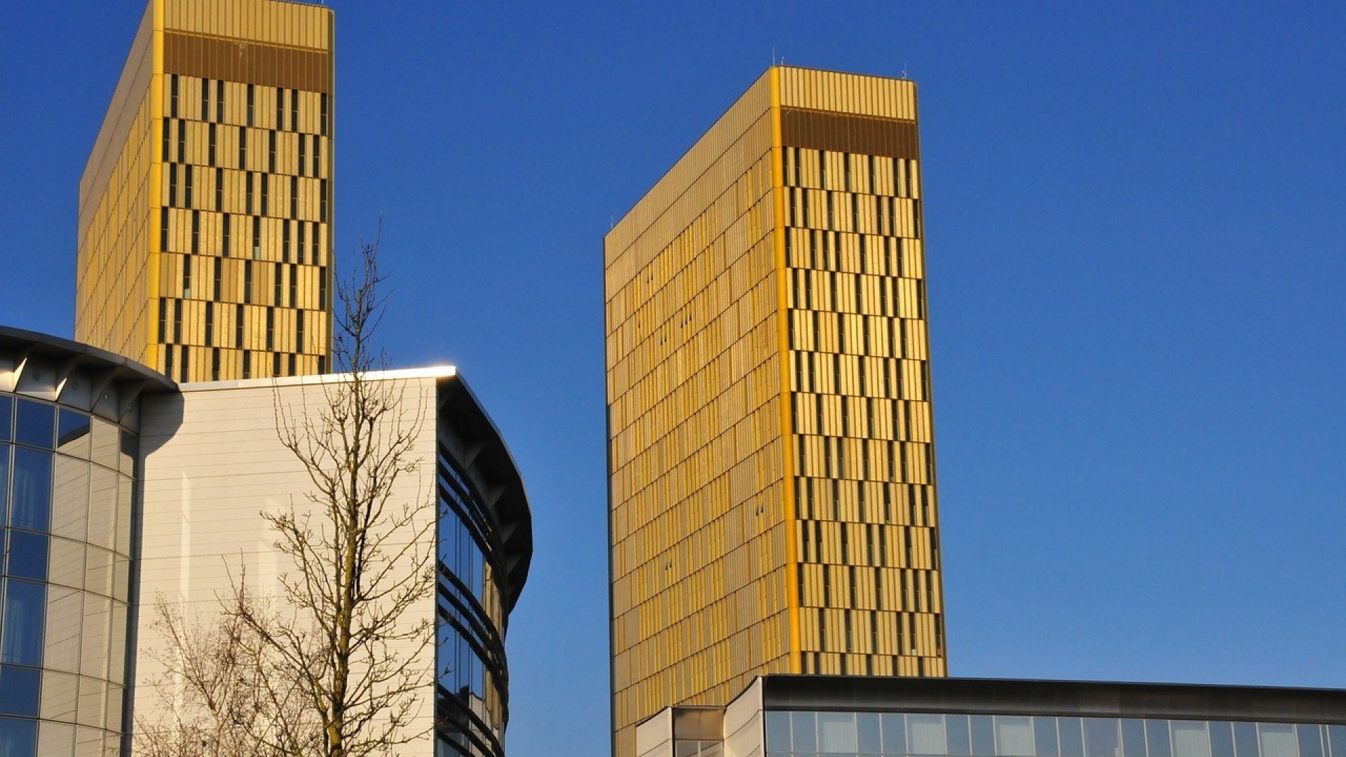 Die beiden goldenen Türme (siehe Abbildung) beherbergen den Übersetzungsdienst, dem eine eigene Direktion mit den einzelnen Sprachabteilungen vorsteht. Übersetzer müssen über juristisches Know-how verfügen und mindestens zwei weitere Sprachen neben der eigenen Muttersprache beherrschen.