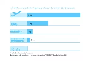 Der wichtigste Punkt auf dem Klimakonto unserer Urlaubsreise ist die Anreise – sie schlägt in puncto Treibhausgas-Ausstoß und Energieverbrauch besonders stark zu Buche. Rund 85 Prozent aller Urlaubsreisen tätigen die Deutschen dabei mit den wenig nachhaltigen Verkehrsmitteln Auto und Flugzeug, Tendenz steigend. Gerade im Sommer trägt die Blechlawine jedoch neben dem hohen Energieverbrauch zur klima- und gesundheitsschädlichen Ozonbelastung der Luft bei – von Stress und Unfallgefahr ganz zu schweigen.