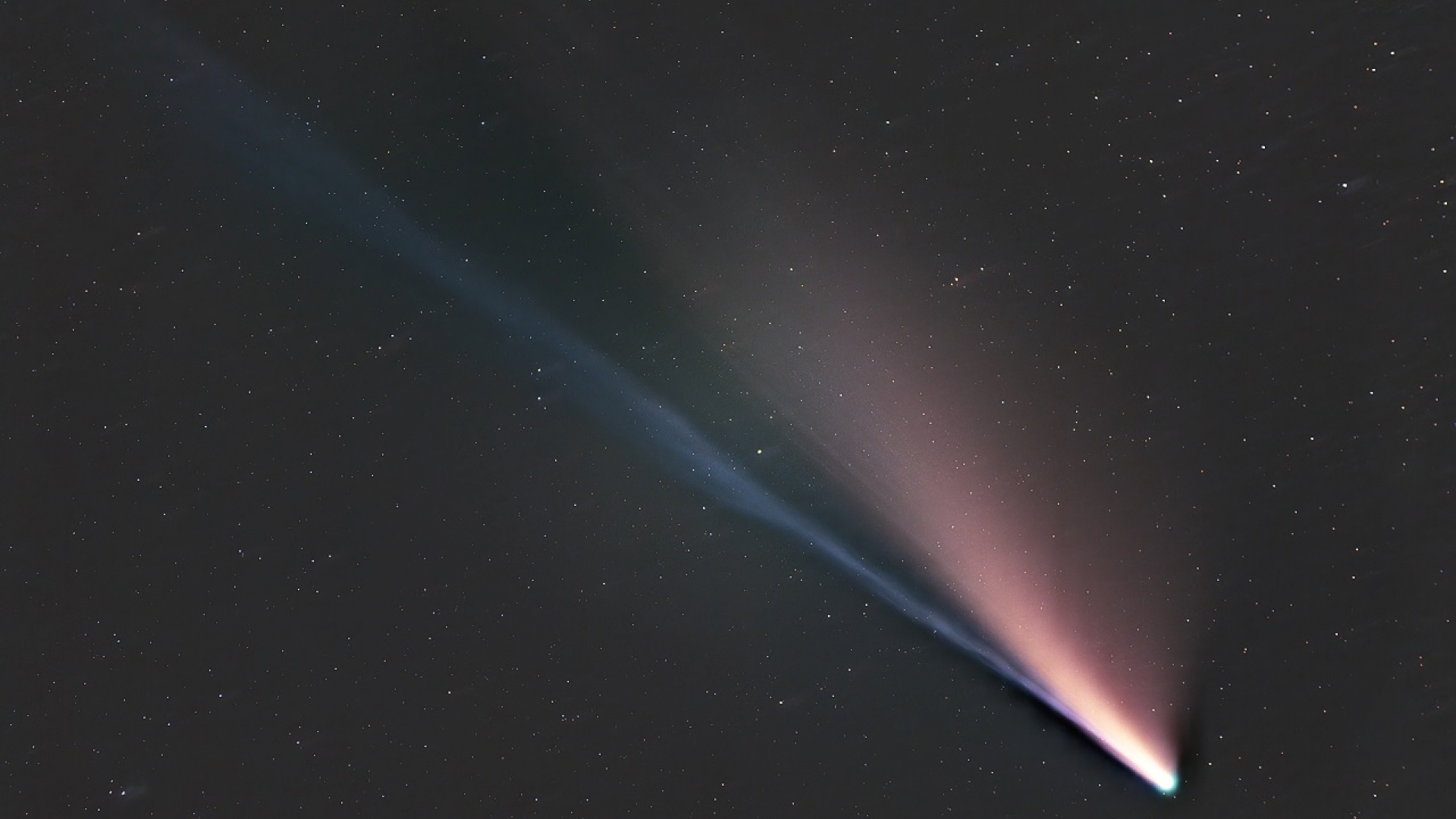 Das Auffallende dabei: Kometen leuchten oft nicht einfach nur weißlich, sondern sind teilweise sogar intensiv gefärbt. Meist erstrahlt der Kometenkopf dabei in einem intensiven grün, der Schweif hingegen bleibt entweder weißlich oder hat eine gelblich-rötliche bis sogar ins violette spielende Farbe. Was aber macht den Kern und die Koma des Kometen so grün? Und warum ist nicht auch der Schweif genauso grün gefärbt?