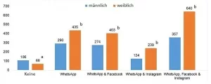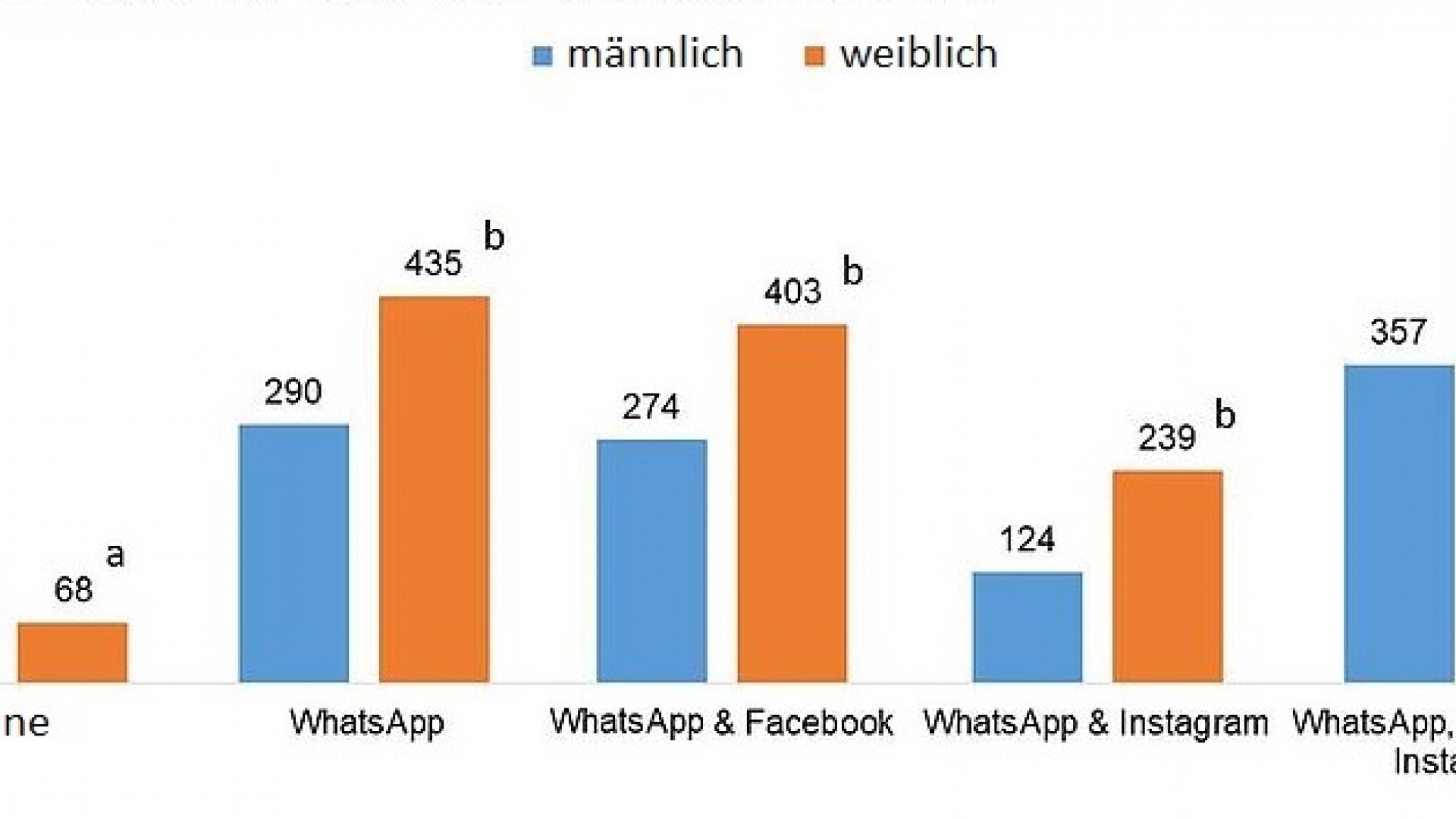 Die Auswertungen ergaben: Auf nahezu allen Social-Media-Plattformen hatten Frauen die Nase vorn. Sowohl bei den einzelnen Kanälen wie auch bei allen zusammen gab es mehr Nutzerinnen als Nutzer. Sowohl bei Männern wie Frauen hat der Messenger-Dienst WhatsApp die größte Reichweite – 92 Prozent benutzen ihn. Facebook und Instagram folgen erst mit einigem Abstand, sie werden von rund der Hälfte beziehungsweise gut 43 Prozent genutzt.