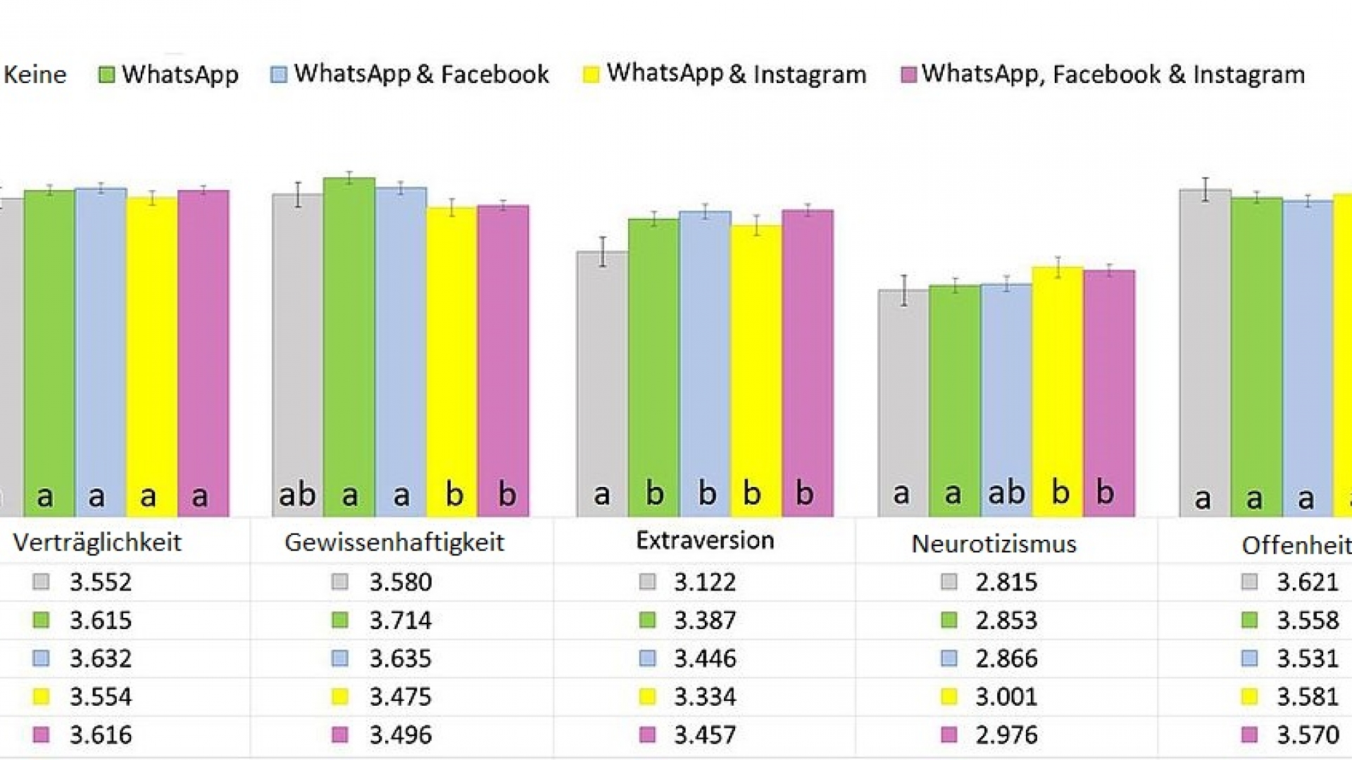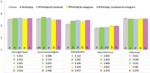 Einen ähnlichen, aber umgekehrten Trend gab es bei der Gewissenhaftigkeit: Personen, die auf allen drei Plattformen oder vorwiegend in der Kombination WhatsApp/Instagram aktiv sind, waren im Schnitt etwas weniger diszipliniert und gewissenhaft. "Insoweit stimmen diese Ergebnisse mit früheren Studien über die ,Big Five‘-Persönlichkeitsmerkmale und die Verwendung spezifischer Social-Media-Plattformen überein", sagt Montag.
