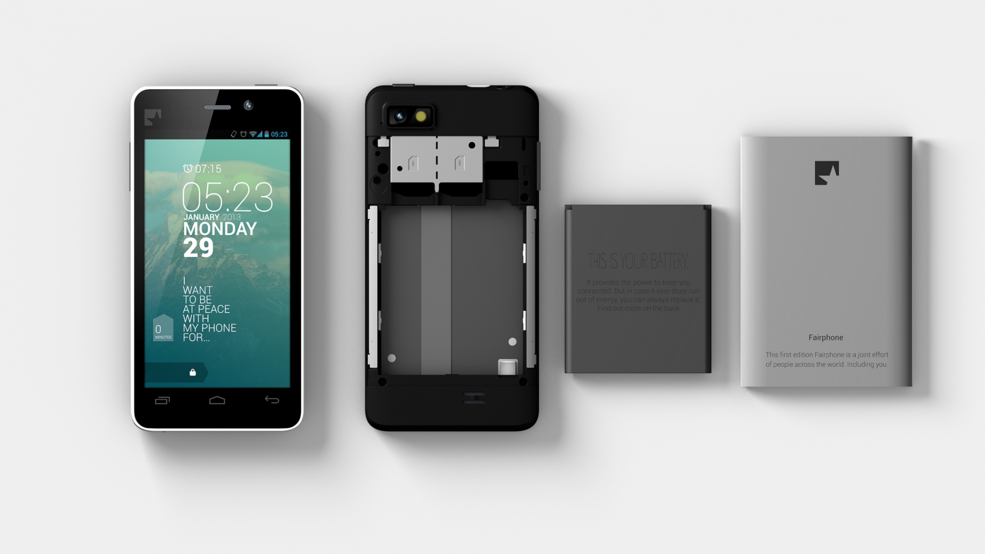 Das Fairphone dagegen ist ein Smartphone mit dem Anspruch, soziale Werte und Nachhaltigkeit an erste Stelle bei seiner Produktion zu setzen. Die niederländische Hersteller-Firma Fairphone B.V ging daher auch aus einer gemeinnützigen Stiftung hervor: Die Waag Society in Amsterdam wollte ursprünglich über die Problematik der Smartphone-Herstellung aufklären und Potenziale für mehr Nachhaltigkeit im Telekommunikationsbereich aufzeigen. Aus dieser Aufklärungsarbeit entstand die Idee, selbst ein Telefon unter fairen Bedingungen und mit vollständig transparentem Herstellungsprozess zu produzieren – das Fairphone.